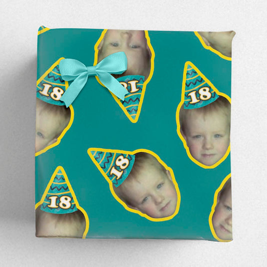 Personalised Birthday Party Hat Printed Wrapping Paper