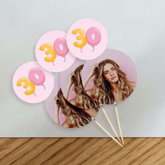 Personalised Fun Photo Birthday Cake Toppers 12 pack