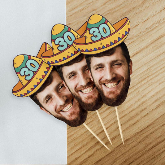 Personalised Fun Photo Birthday Cake Toppers 12 pack