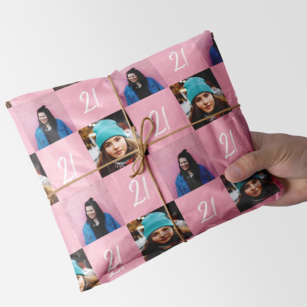 Wrap it up real good with this personalised printed gift wrapping paper. This single sided wrapping paper is printed, folded and delivered to you especially for that special someone in your life. Personalise yours with 2 x photos, colour selection and age. Add 6 x matching gift tags to your order for just £3.99 (string not included) Minimum order quantity is 2 x sheets