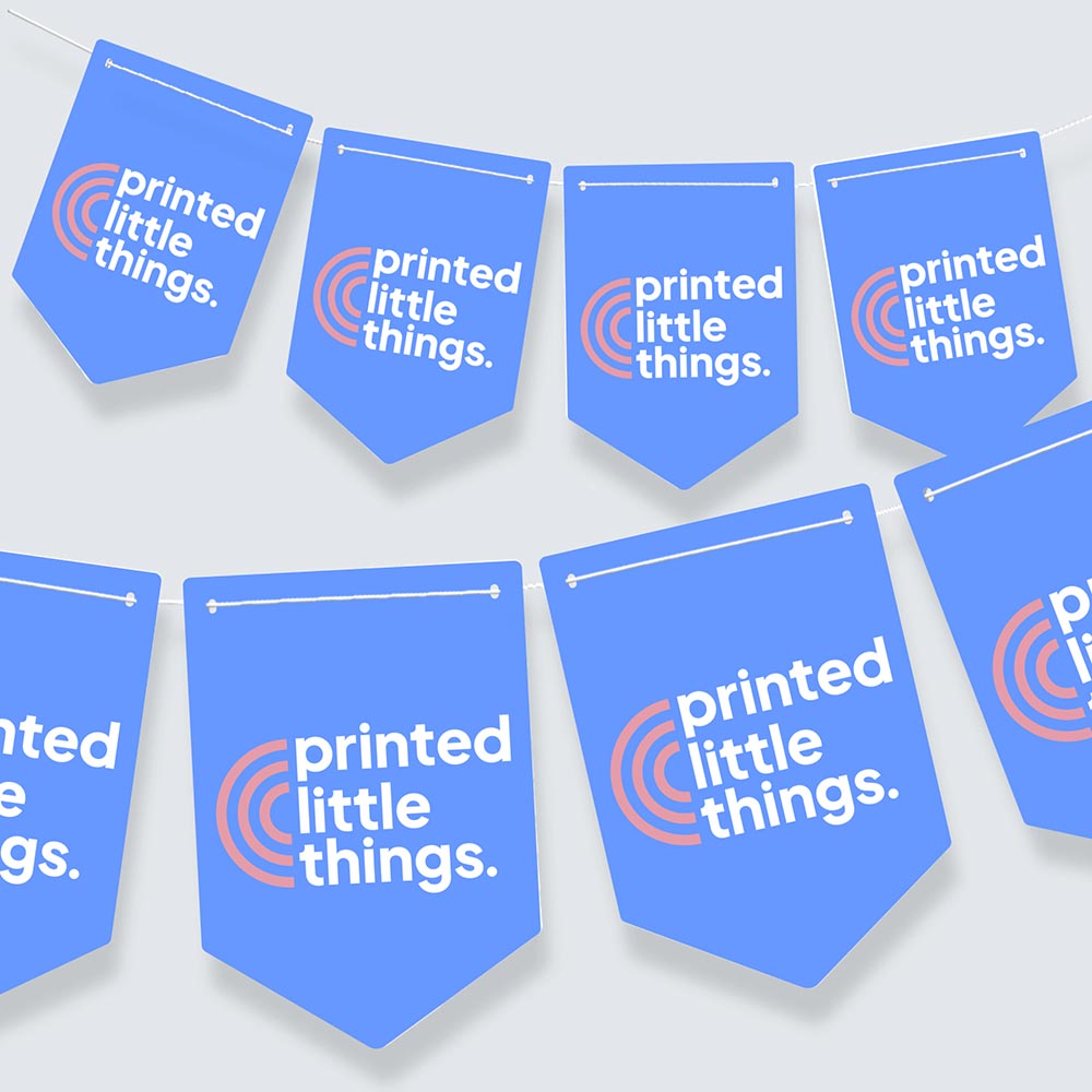 Add an extra element of personalisation to your next trade show or company event. What better way to show off your brand than with string of personalised chevron logo bunting! Every metre of bunting holds four pendants. Simply upload your file, select your string colour, and the length that you require. Add special instructions at the checkout if you would like to further customise your design, and we can arrange for proofs to be sent to you.