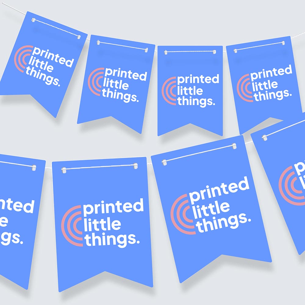 Add an extra element of personalisation to your next trade show or company event. What better way to show off your brand than with string of personalised flag-shaped logo bunting! Every metre of bunting holds four pendants. Simply upload your file, select your string colour, and the length that you require. Add special instructions at the checkout if you would like to further customise your design, and we can arrange for proofs to be sent to you.