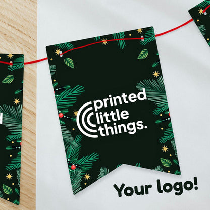 Add an extra element of personalisation to your Christmas company event. What better way to show off your brand than with string of personalised logo bunting! Every metre of bunting holds four pendants. Simply upload your file, select your string colour and the length that you require. Add special instructions at the checkout if you would like to further customise your design, and we can arrange for proofs to be sent to you.