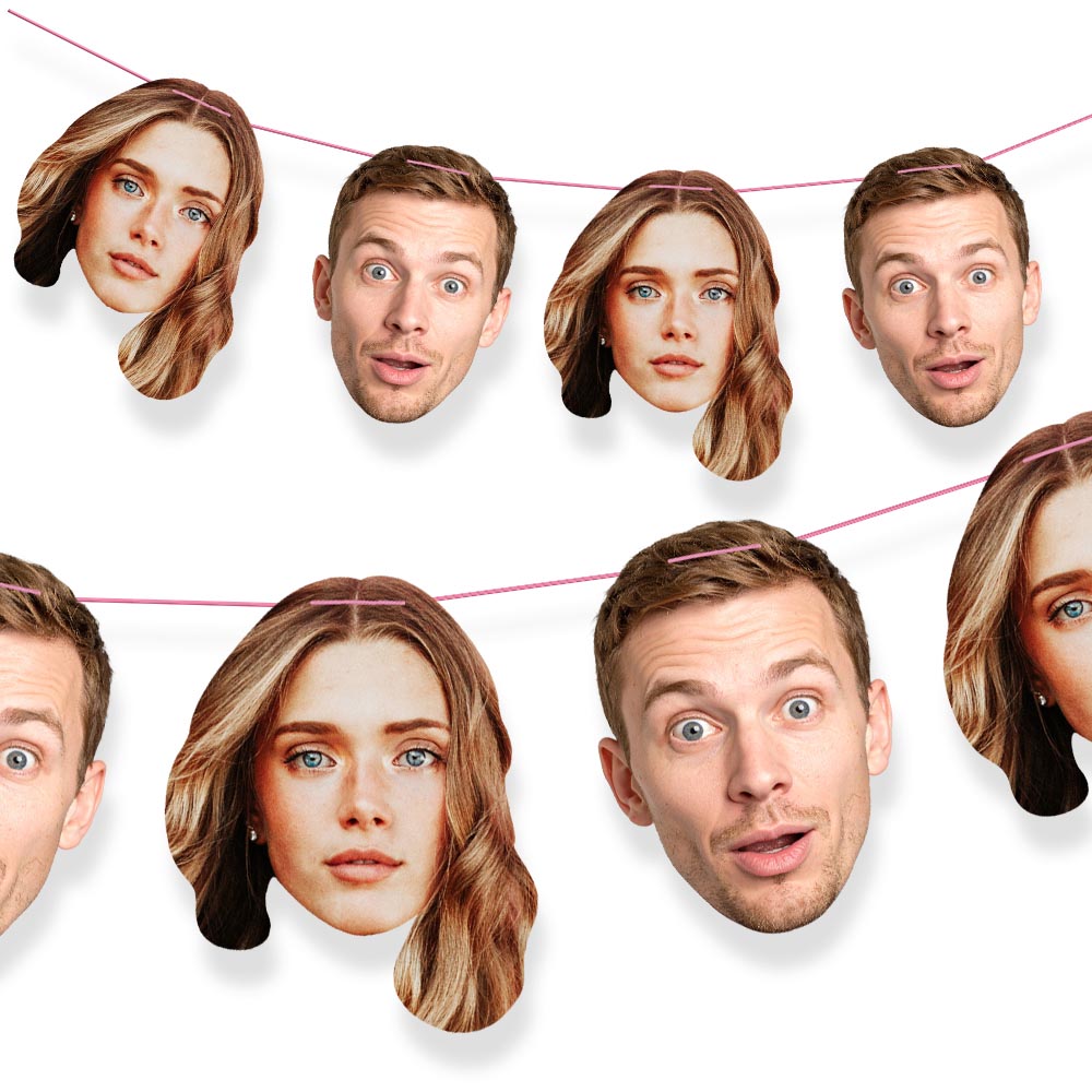 Celebrate in style with custom face bunting, featuring two faces! Forget boring bunting - make a real impression with laugh-out-loud party decor from Printed Little Things. What better way to make someone feel special than by making their faces the star of the show?!