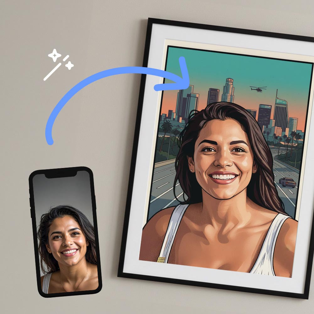 Transform your favourite photo into a vibrant comic book masterpiece! This playful poster art print brings your image to life in bold, dynamic game art style—perfect for adding a pop of personality to any room. Simply upload your photo and watch it become an eye-catching print that's bursting with colour and character. Frame sold separately, so you can choose the perfect match for your space.
