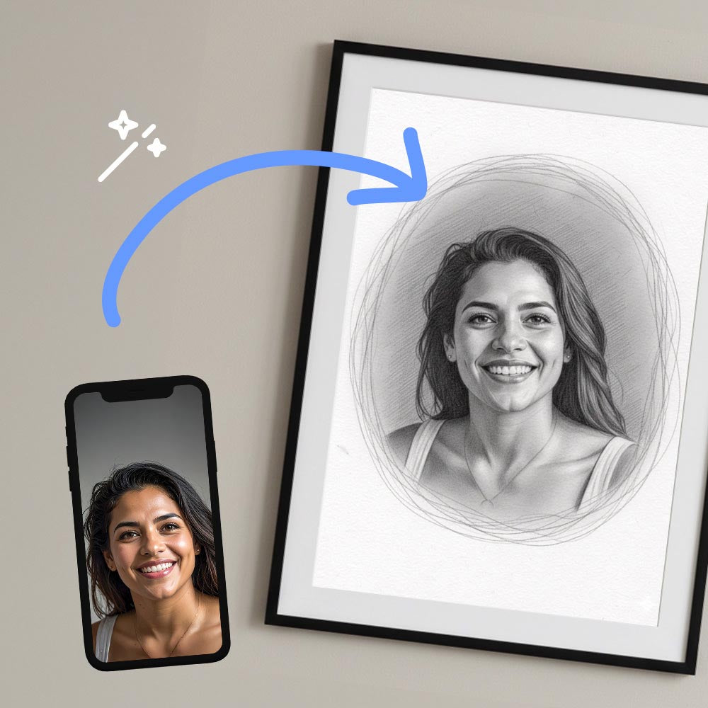 Transform your favourite photo into a charming pencil sketch-style poster! Simply upload your image and watch it become a delightful piece of wall art with that classic hand-drawn aesthetic. Perfect for adding a touch of artistic flair to any room. Frame it your way – the print is ready whenever you are.