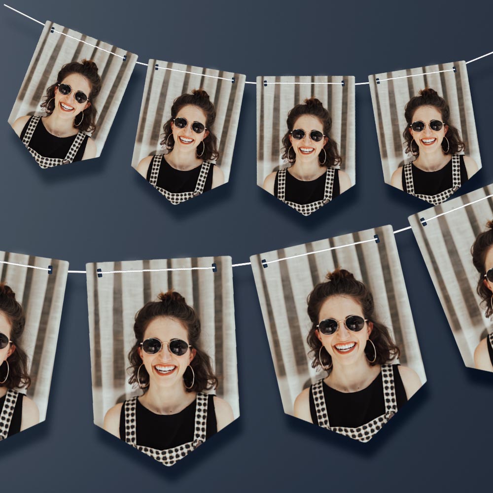 Bring a fun, personal touch to your celebration with our personalised photo chevron bunting! Perfect for showcasing your favourite photos, this charming bunting adds a unique vibe that brightens any party space. Each metre features four vibrant chevron chevrons - just upload your photo, pick your favourite twine colour, and choose your desired length. Let the party fun begin with this delightful, custom decoration!